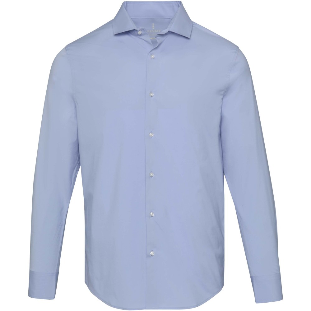 A Carnelian hosszúujjú férfi puplin ing modern kifinomultságot és fokozott kényelmet ötvöz. Kiváló minőségű, BCI-tanúsítvánnyal rendelkező pamutból készült, hozzáadott rugalmassággal, finom 30 denier kétrétegű sodrott szálszerkezettel, amely sima felületet, kivételes tartósságot és luxus érzetet biztosít. A könnyű puplin szövet friss, tiszta megjelenést kölcsönöz, míg a normál fazon mozgásszabadságot és egész napos kényelmet biztosít. Klasszikus, normál gallérral ellátott Carnelian ing sokoldalúan viselhető, mind üzleti, mind alkalmi viselethez. Puplin 97% BCI pamutból és 3% elasztánból, 133 g/m2.
