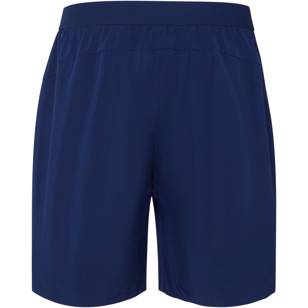 Könnyű és rugalmas. Újrahasznosított poliészterből készült. Gumis derék húzózsinórral és rugalmas pánttal hátul. Nagyméretű oldalzsebek. Hegesztett szegélyöltések. Mikroperforált anyaggal kombinálva a jobb légáteresztés érdekében. Eltávolítható címke.