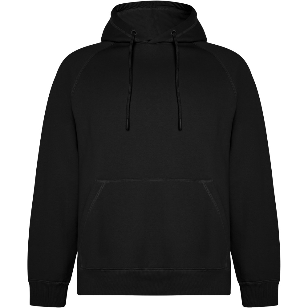 Uniszex, kapucnis pulóver organikus pamutból és újrahasznosított poliészterből. Kenguru zseb. Bélelt kapucni. Állítható húzózsinór és közbehímzett zsinórnyílások. A kézelő- és az aljpasszé 2x1 bordás anyagból készült. Csomagolás egyenként újrahasznosított zacskóban. 60% organikus pamut és 40% újrahasznosított poliészter, 300 g/m2.