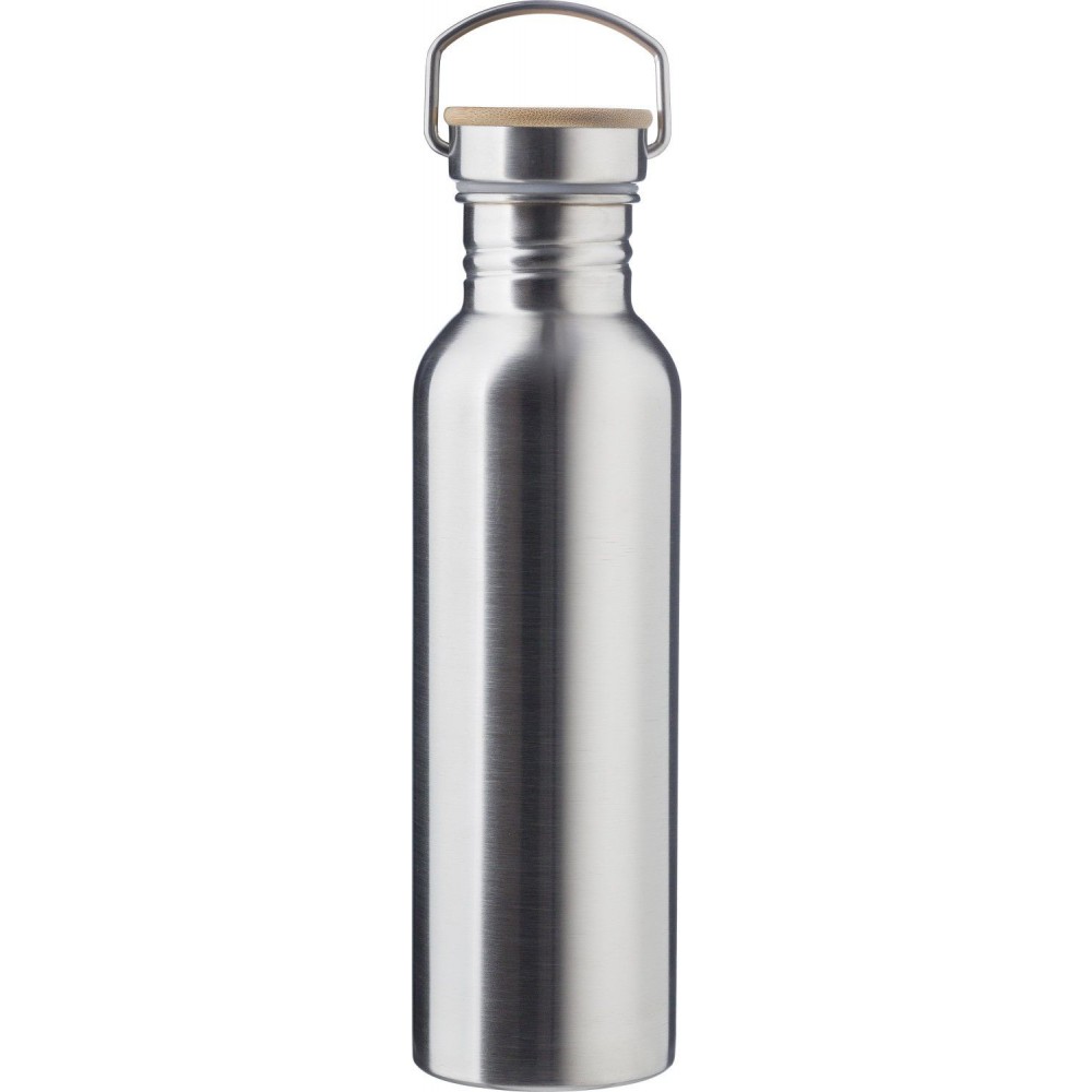 Rozsdamentes acél palack csavaros bambusz kupakkal. 700 ml.