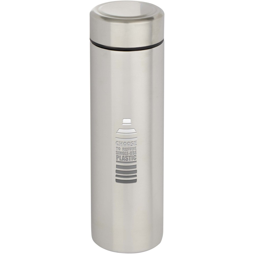 Duplafalú, vákuumszigetelt rozsdamentes acélból készült termosz, amely hosszú ideig tartja az italokat a kívánt hőmérsékleten. A kényelmesebb használat érdekében egy kivehető teaszűrőt tartalmaz. A 450 ml-es űrtartalom és a szivárgásmentes kialakítás révén ideális választás a mindennapi használatra vagy utazásokhoz.